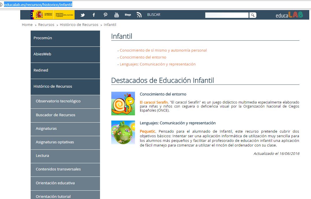 1. https://educalab.es/recursos/historico/infantil: recursos digitales educativos abiertos, se reúne material didáctico catalogado de forma estandarizada a través de metadatos (LOM-ES), coherente con el currículo de enseñanzas de diferentes etapas. Entre ellas infantil.